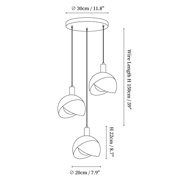 59″ Adjustable hanging height cable. Can be extended upon request.