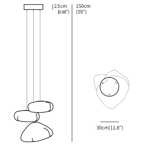 59″ Adjustable hanging height cable, which can be lengthened as required.