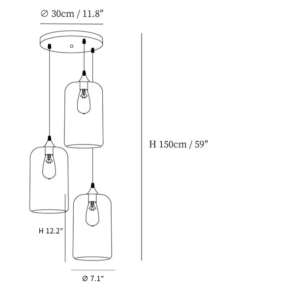 3 Heads E Round Canopy Size: Dia 30cm x H 150cm / ∅ 11.8″ x H 59″