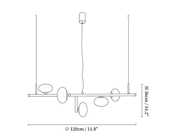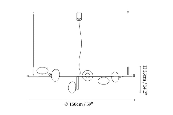 59″ Adjustable hanging height cable, which can be lengthened as required.
